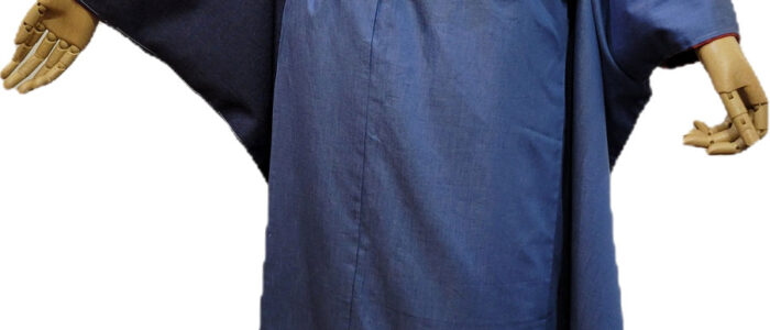 しなやかな洋服生地で仕立てられた、シンプルながらも圧倒的な存在感を放つ一着です。濃紺から水色へと溶け合うグラデーションが、静寂の中に息づくような美しさを描き出し、装飾を一切排した潔さが、現代的なモード感を際立たせています。生地の質感は控えめながらも深みがあり、光を受けてわずかに表情を変えるその姿は、まるで静かな海面のように穏やかで、見る人に印象的な余韻を残します。